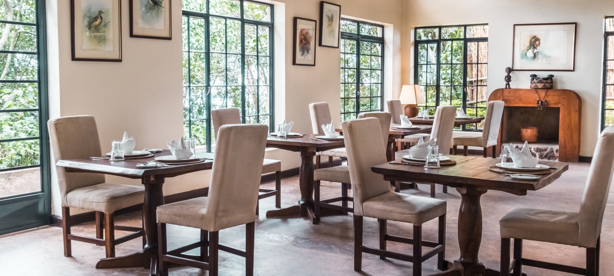 Perched 2,000 metres above sea level on a ridge beside Bwindi Impenetrable Forest, Clouds Mountain Gorilla Lodge quite literally sits amongst the clouds. This height lends itself to incredible views stretching across the Virunga Volcano range of Rwanda and into the Congo. The lodge oozes elegance; high-beamed ceilings and enormous windows fill the volcanic stone buildings with natural light, whilst double-sided fireplaces and large, deep sofas invite guests to sink into its warm atmosphere.