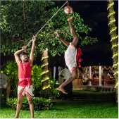 Kalaripayattu is a domain of self-discipline and its primary aim is said to be “the ultimate coordination between mind and body”. Many believe that it has influenced martial art practices like Kung-Fu, Karate etc. when a Buddhist Monk from India, Bodhidharma, went to China in the 5th century and taught monks there, this art form. Since then, the 16th century warrior-heroine Unniyarcha, the more contemporary practitioner and teacher, Meenakshi Amma, the first Indian with a PhD in Kalaripayattu, Gangadharan, have underlined, repeatedly, Kalaripayattu’s relevance and importance in the local culture.